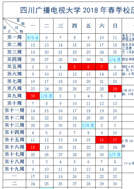 四川电大城铁学院2017年春季校历